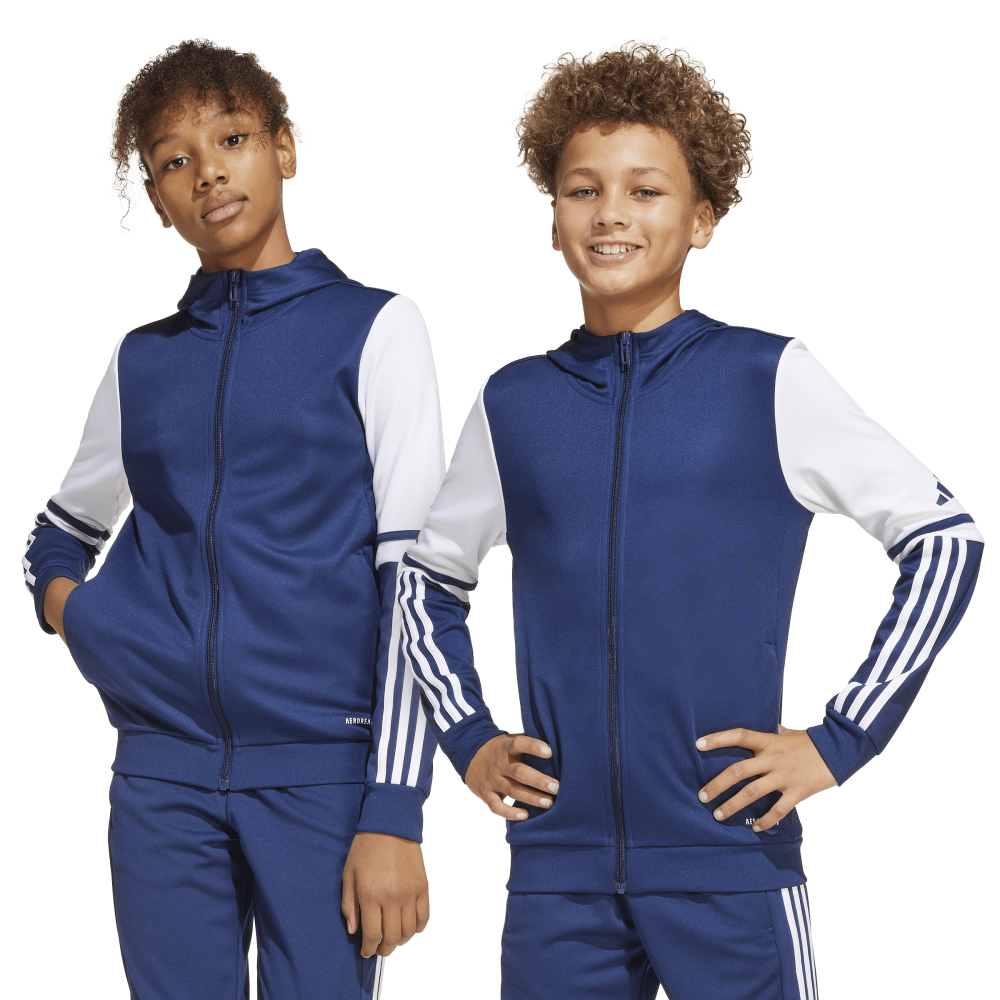 Wenn du und dein Team bei kühleren Temperaturen draußen aktiv seid oder euch auf dem Weg zum nächsten Spiel befindet, ist die Squadra 25 Kapuzenjacke in Dunkelblau genau das Richtige für euch! Das kuschelige Doppelstrickmaterial mit seinen gerippten Details hält euch schön warm, während die Aeroready Technologie dafür sorgt, dass ihr trocken bleibt und euch wohlfühlt.