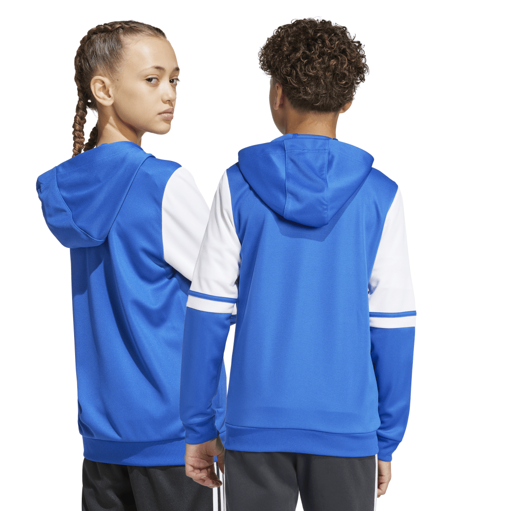 Wenn du und dein Team bei kühleren Temperaturen draußen aktiv seid oder euch auf dem Weg zum nächsten Spiel befindet, ist die Squadra 25 Kapuzenjacke in Blau genau das Richtige für euch! Das kuschelige Doppelstrickmaterial mit seinen gerippten Details hält euch schön warm, während die Aeroready Technologie dafür sorgt, dass ihr trocken bleibt und euch wohlfühlt.
