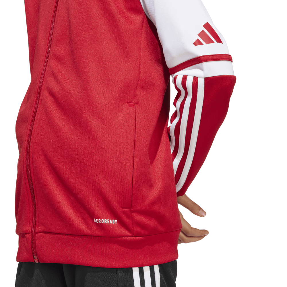 Wenn du und dein Team bei kühleren Temperaturen draußen aktiv seid oder euch auf dem Weg zum nächsten Spiel befindet, ist die Squadra 25 Kapuzenjacke in Rot genau das Richtige für euch! Das kuschelige Doppelstrickmaterial mit seinen gerippten Details hält euch schön warm, während die Aeroready Technologie dafür sorgt, dass ihr trocken bleibt und euch wohlfühlt.