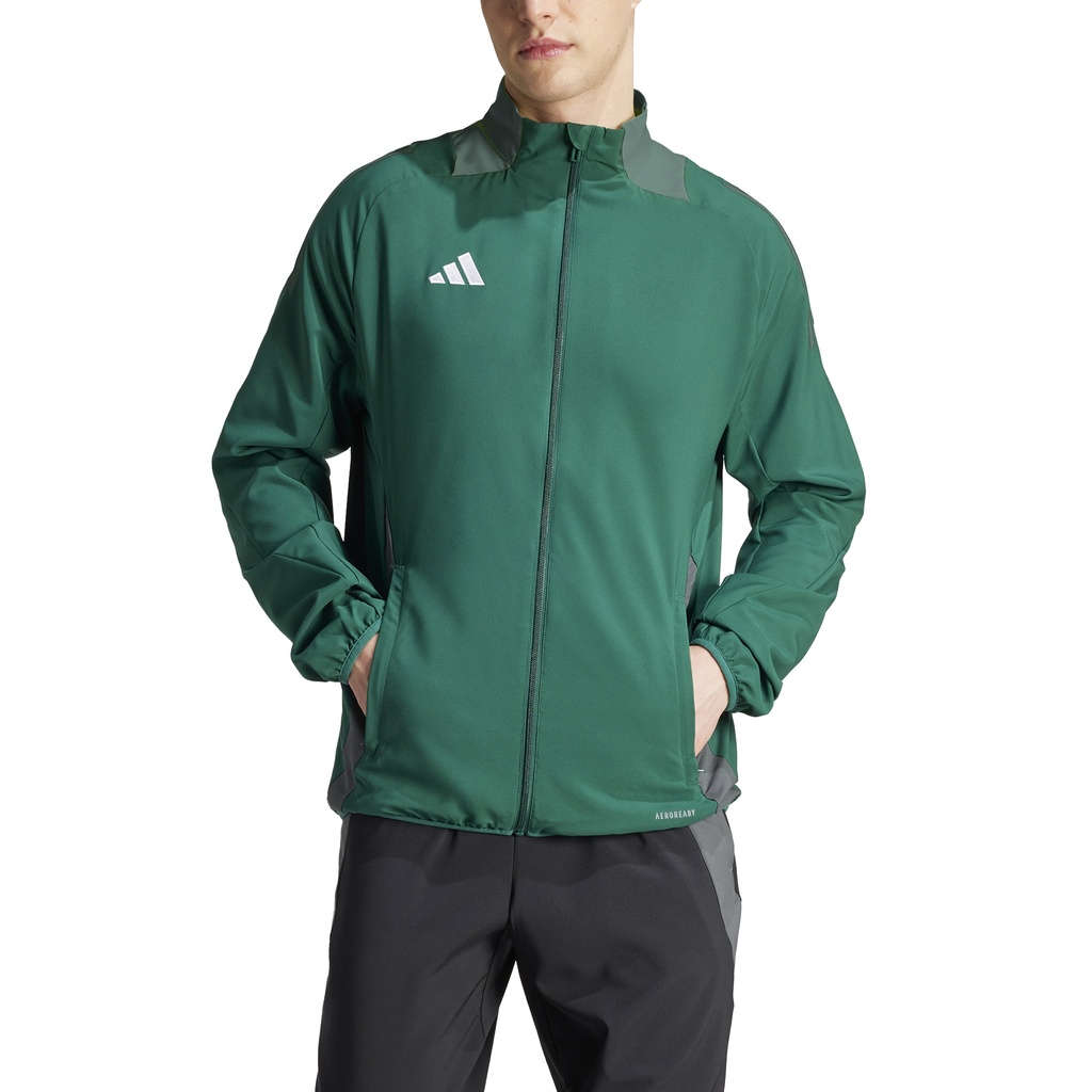 Praktische Reißverschlusstaschen bieten Platz für deine wichtigsten Essentials, und die elastischen Bündchen sorgen für eine optimale Passform. Kombiniert mit der Tiro 24 Competition Präsentationshose entsteht ein stylisches und funktionales Outfit, das dich und dein Team perfekt in Szene setzt!