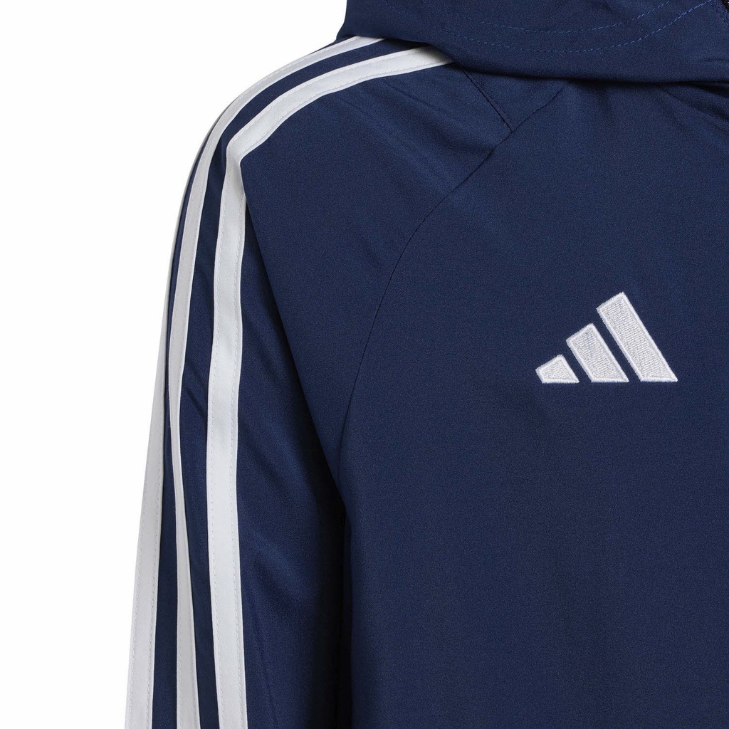 Bleib fokussiert, egal wie das Wetter ist, mit dem Tiro 24 Windbreaker in dunkelblau. Diese Jacke wurde entwickelt, um dir auch an windigen Tagen Topleistung zu ermöglichen.