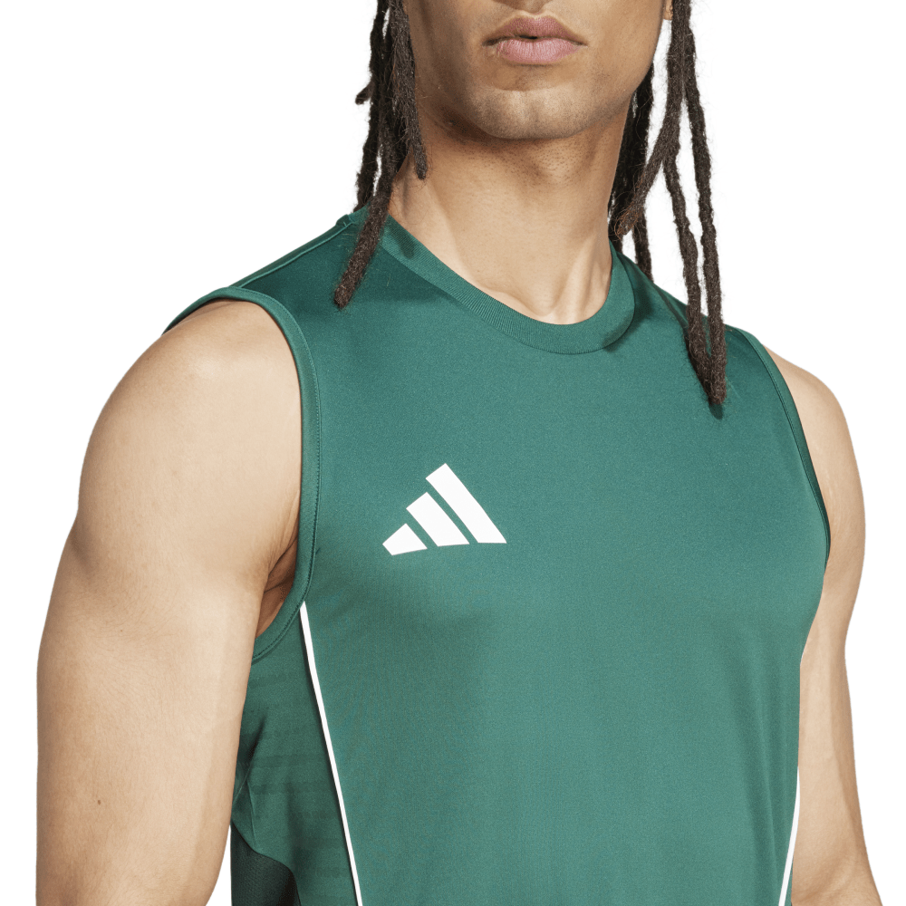 Das Tiro 25 Competition Tanktop in Grün ist die ideale Wahl für anspruchsvolle Trainingseinheiten. Mit seinem ärmellosen Design bietet es dir uneingeschränkte Bewegungsfreiheit, während die feuchtigkeitsregulierende Technologie dafür sorgt, dass du auch bei intensiven Workouts angenehm trocken bleibst.