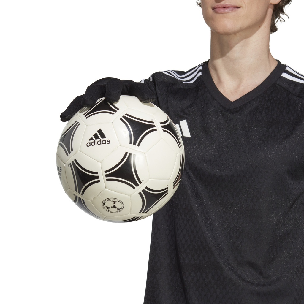 Hol dir optimalen Schutz und Kontrolle auf dem Fußballplatz. Mit den Tiro League Feldspielerhandschuhen in schwarz bist du bestens ausgestattet, sobald du die Umkleide verlässt. Das weiche, wärmende Material sorgt für hohen Tragekomfort, während das Silikon an den Fingerspitzen sicheren Grip und ein präzises Ballgefühl bei Einwürfen bietet.