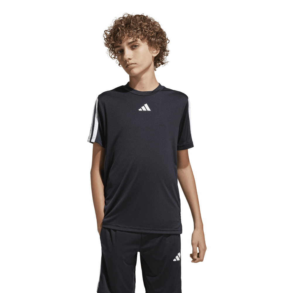 Das Train Essentials 3-Streifen T-Shirt in Schwarz ist ein unverzichtbares Basic für sportliche Aktivitäten – ob auf dem Spielplatz, in der Schule oder draußen im Park.