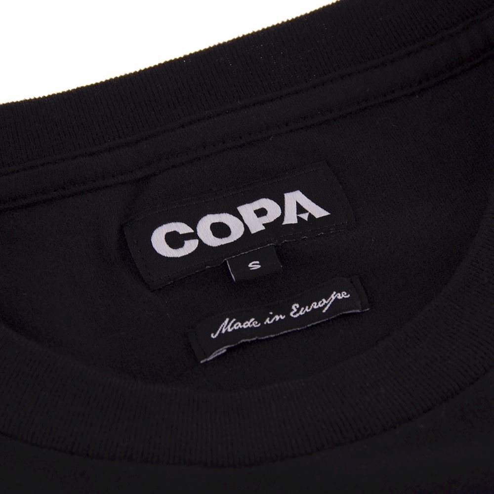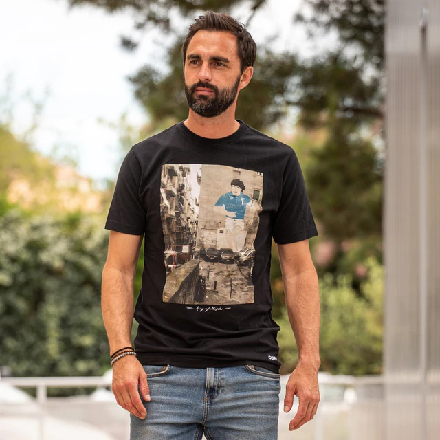 Dieses coole schwarze T-Shirt von Copa würdigt Maradona, den legendären König von Neapel, und ist Teil der ikonischen "Designed by" Kollektion. Der Rundhalsausschnitt und der auffällige Druck auf der Vorderseite machen dieses Shirt zu einem echten Statement. Gefertigt in Europa aus 100% Baumwolle, bietet es einen besonders angenehmen Tragekomfort und eine weiche Haptik.