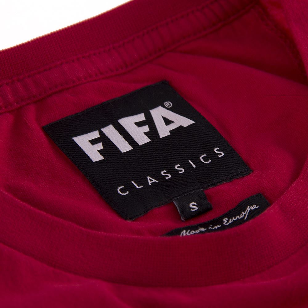 Dieses rote T-Shirt mit dem Maskottchen der FIFA Weltmeisterschaft 1982 in Spanien. Hergestellt in Europa und maschinenwaschbar, ist es ein zeitloses Stück für jeden Fan.