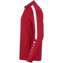 Die Jako Power Polyesterjacke für Herren - eine stilvolle und funktionelle Jacke für vielseitiges Training. Das sportliche Design setzt auf Kontrastfarben, hier in rot-weiß. Diese sind als Materialeinsatz und als markentypische Punkte auf den Ärmeln sichtbar.