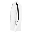 Die Jako Power Polyesterjacke für Herren - eine stilvolle und funktionelle Jacke für vielseitiges Training. Das sportliche Design setzt auf Kontrastfarben, hier in weiß-schwarz. Diese sind als Materialeinsatz und als markentypische Punkte auf den Ärmeln sichtbar.