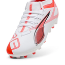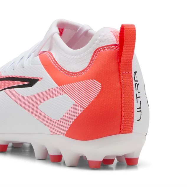 Der Ultra 5 Match Fußballschuh MG in weiß-rot ist nicht nur superleicht, sondern bringt dich auch zu einer explosiven Beschleunigung. Die MG (Multi Ground) Sohle mit ihren clever angeordneten Stollen sorgt dafür, dass du auf festem Rasen und Kunstrasen immer den perfekten Halt hast und blitzschnell agieren kannst.